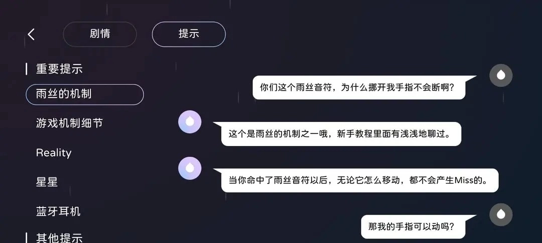 点击右上角的头像,就能查看剧情与提示。这些提示对深入了解Milthm至关重要,能帮助玩家解决不少遇到的难题。