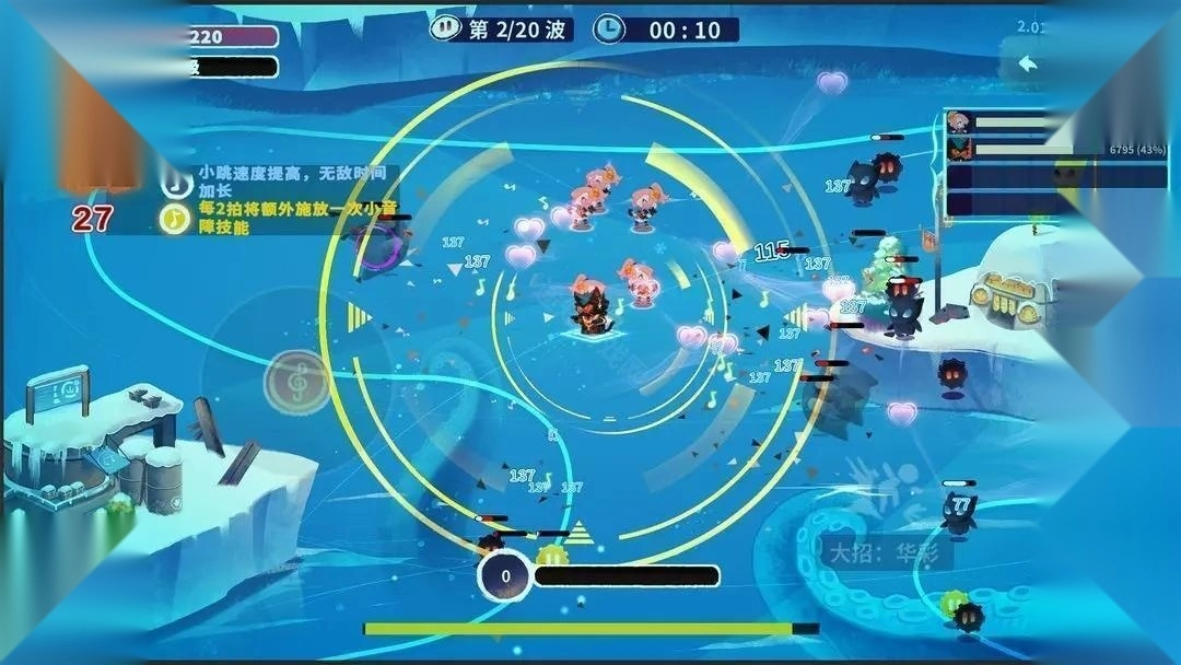 跟随音乐节奏来击退怪物,鼓点可以加成游戏战斗力