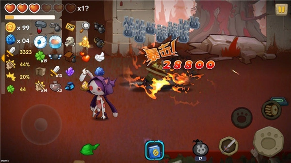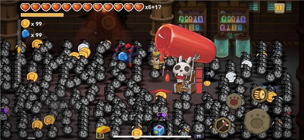核心配置是九只猫加上骷髅头(如果能有巴特饰品就更好了),搭配三级头的被动效果——复活后增加20%攻击。这套组合的优势在于生存能力极强,基本能做到持续复活、几乎不死。前几关可以站在原地让怪物攻击,借此刷攻击数值,通常刷到300左右就能顺利通关;要是有足够时间,甚至能刷到上万攻击,届时打怪就能达到一击秒杀的效果。