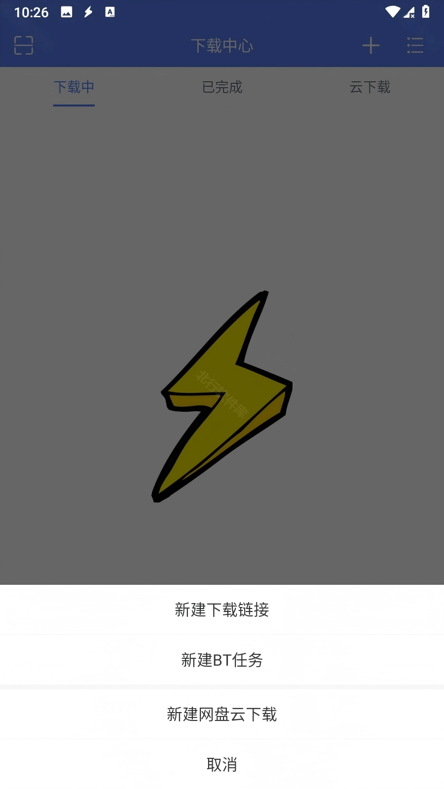 打开闪电应用,进入主页界面后,点击右上角的加号图标