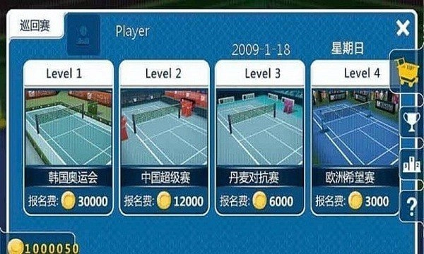 选择你钟爱的比赛模式,比如单打、双打或者联赛之类的,然后开启比赛之旅。