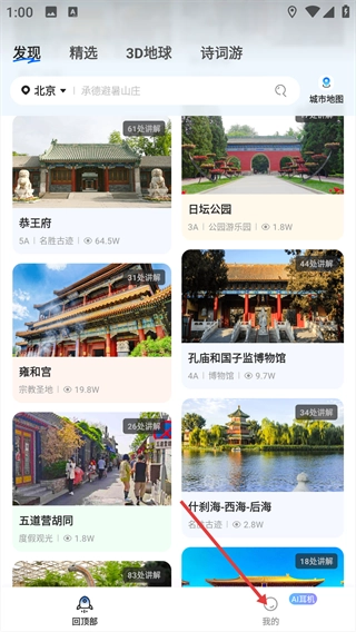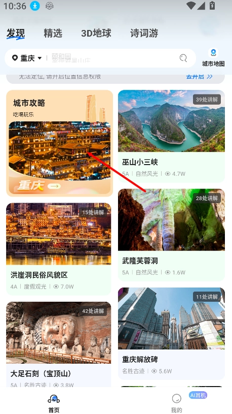 打开旅途随身听应用,在首页找到旅游城市选择的入口并点击进入对应界面。