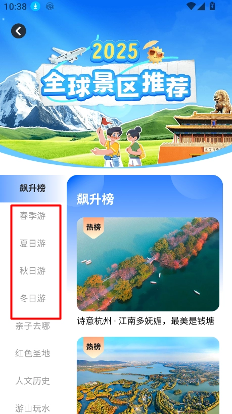 借助全球景区推荐功能,可浏览适配春夏秋冬不同季节的景区。