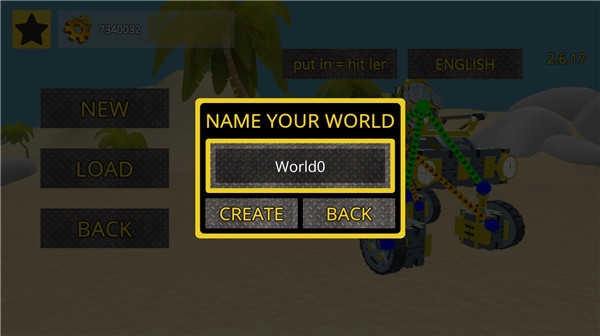 进入万物创造沙盒机械师最新版本,点击SANDBOX即可开始游戏。