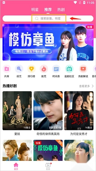 点击放大镜图标后,在弹出的搜索框内输入你想查找的电视剧名称。
