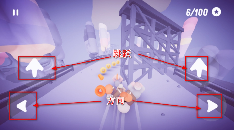 身法跳跃躲子弹云:靠近两朵会发射子弹的云朵时,留意子弹飞行轨迹,借助连续跳跃或滑行来避开攻击,最终到达终点。