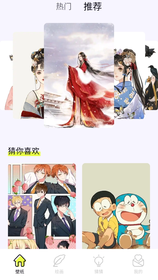 在绘画页面中,顶部设有进入绘画功能的选项,底部则提供了可自主创作动漫头像的功能。