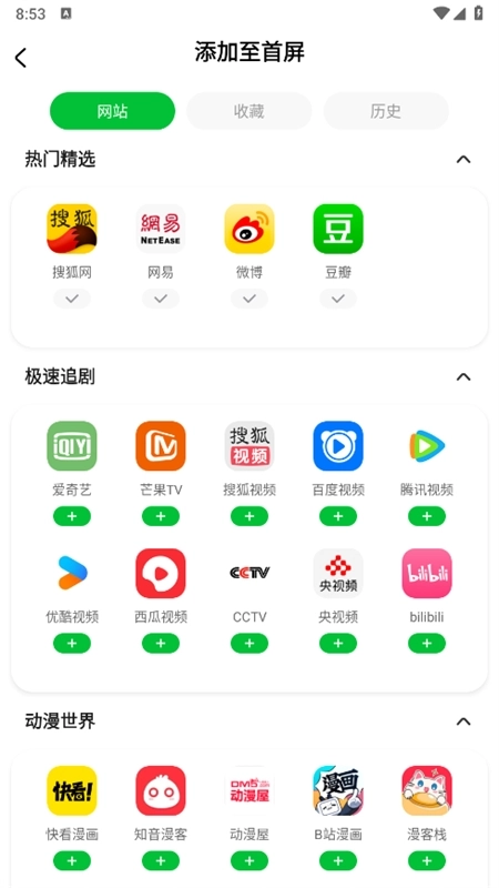 点击添加按钮,就能把喜爱的网站直接添加到首屏,让浏览变得更便捷。
