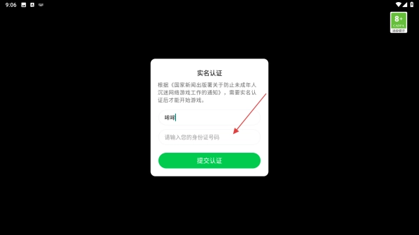 打开游戏后,会弹出实名认证的窗口,按照提示在【请输入您的真实姓名】这个输入框里,准确地填写好自己的姓名。