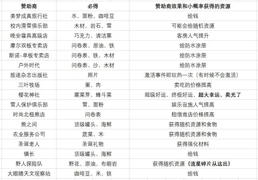 赞助商大多是到了特定时间就会自动出现,目前只有雪人保护俱乐部需要放置12个小雪人,其他的都是时间一到就自行出现了。