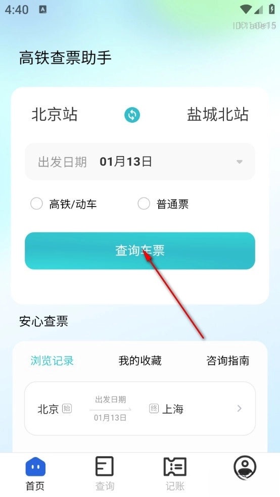 然后返回首页点击查询车票