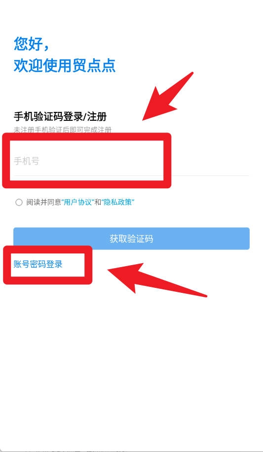 在登录界面,用户既可以使用手机号验证码登录,也能够选择账号密码登录,从而便捷快速地进入系统。