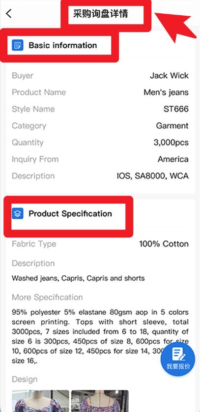在采购询盘详情页,用户可查看买家基本信息、产品规格及详细说明,从而精准对接客户需求。