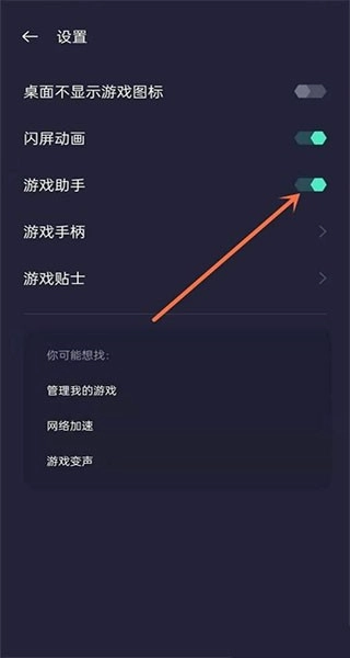 设置页面将游戏助手开启。