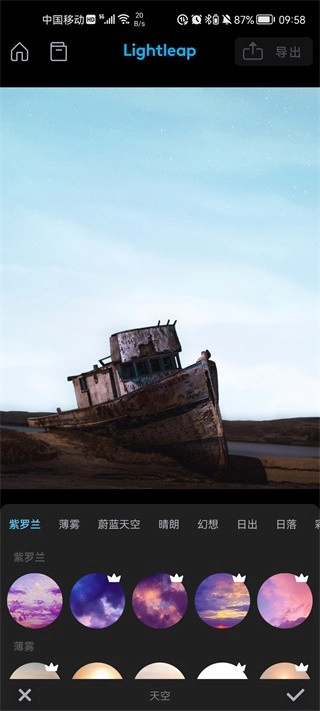 一键换天功能,能够把照片里的背景迅速替换成全新的天空,多样风格可供你随意选择。