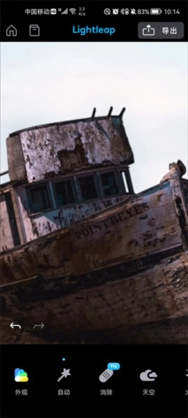 打开lightleap图像编辑软件后,选中并导入需要处理的图片,接着就能看到软件支持多种修改功能,包含外观、自动、滤镜和调整等选项。