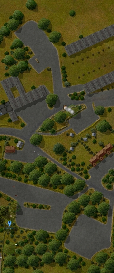 我方步兵单位与部分装甲单位穿过建筑区后,我方坦克被右侧的反坦克炮摧毁。
