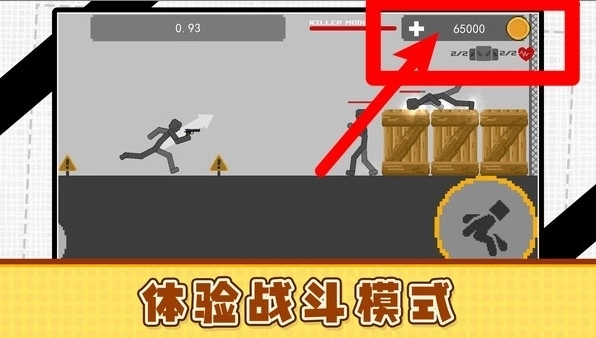 战斗模式:在该模式下,玩家能够收集金币和各类道具,界面右上角会实时显示当前的血量与得分;玩家需要通过击败沿途敌人、灵活避开箱子障碍,来完成向前推进的挑战任务。