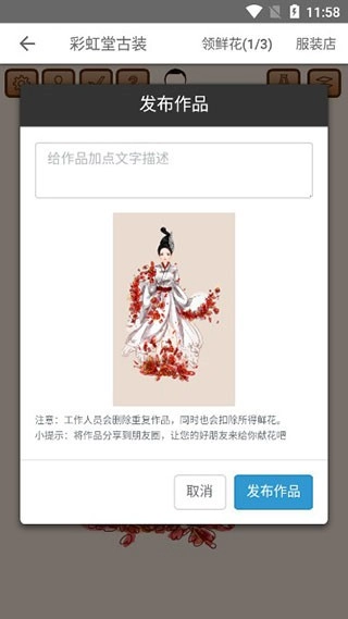 换装完成后,点击左上方的√按钮发布,并添加文字描述。