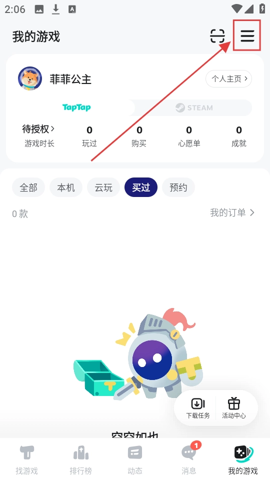 进入“我的游戏”页面后,点击右上角的菜单图标,侧边栏就会展开,各类功能选项便清晰可见啦。