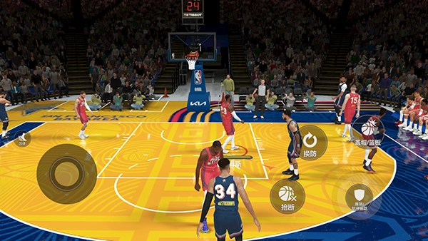 策略性拉满的5V5竞技模式:玩法内核更贴近端游NBA2K24,聚焦上限更高、策略性更强的5V5对抗,单局时长四分钟,操作上依旧可以通过搓招实现背运误导、原地后拉、后撤跳投等细节动作,为玩家创造了充足的博弈空间。