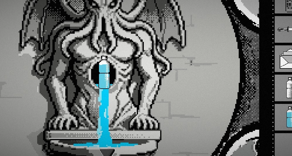 与雕像对话,使用小刀献祭鲜血,使用空瓶获取泉水