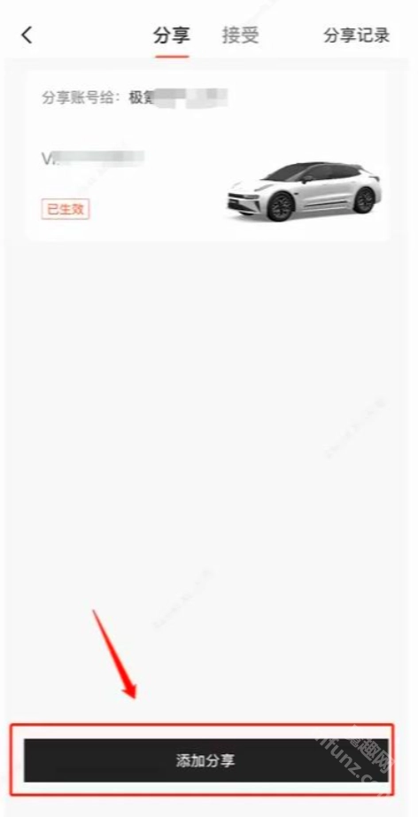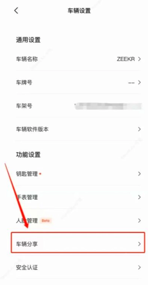选择车辆分享的操作步骤如下:首先在菜单里找到并点击“车辆分享”选项,接着再执行“添加分享”的点击操作。