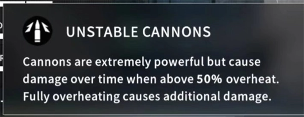 机炮的伤害数值非常高,不过当过热程度超过50%后,要是继续使用就会持续给自己带来少量伤害,而一旦过热达到100%,则会造成大量伤害。
