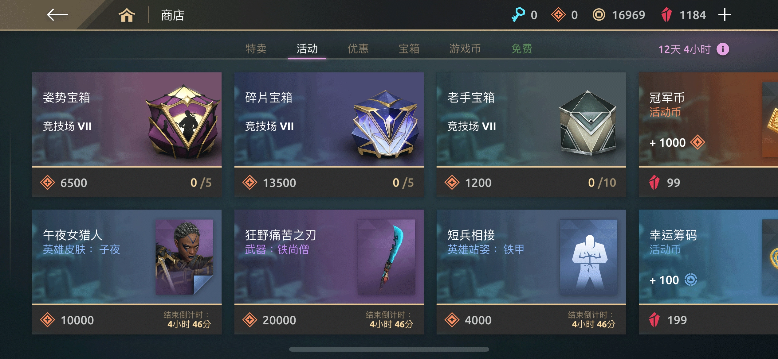 和暗影格斗3里钻石没什么用武之地不同,暗影格斗4里的钻石可是硬通货,除了通行证之外,其他任何东西都能用它购买。也正因为钻石这么实用,所以获取它的途径并不多——看广告偶尔能拿到5颗钻石,排位赛每天能领10颗,免费通行证每月能攒175颗,付费的高级通行证则能拿到600颗。那么钻石花在什么地方比较划算呢?可以用来买紫色武器,或者去抽3000钻石的紫武转盘,也可以选择抽3000钻石的皮肤转盘。