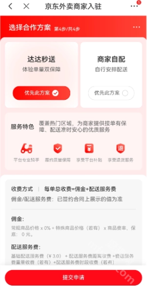 最后选定合作方案,接着提交申请,待申请审核通过后,即可成功加入京东外卖。