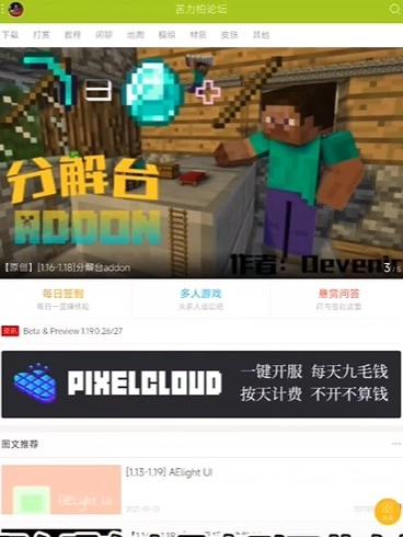 苦力怕论坛是专为Minecraft打造的游戏论坛平台,玩家能在这里浏览大佬分享的攻略教程,获取游戏最新资讯,还可免费获取各类地图、模组与材质资源。