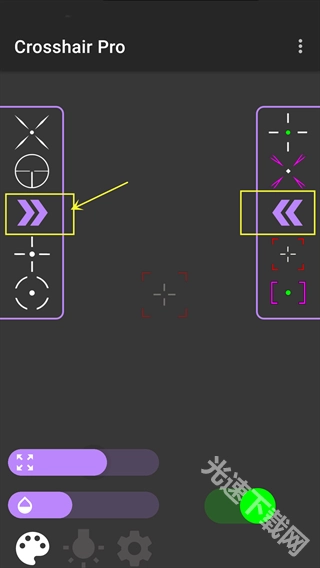 当然,软件内提供的准星类型远不止当前展示的这些,您可以点击下图中所示的箭头按钮,以查看更多的准星类型。