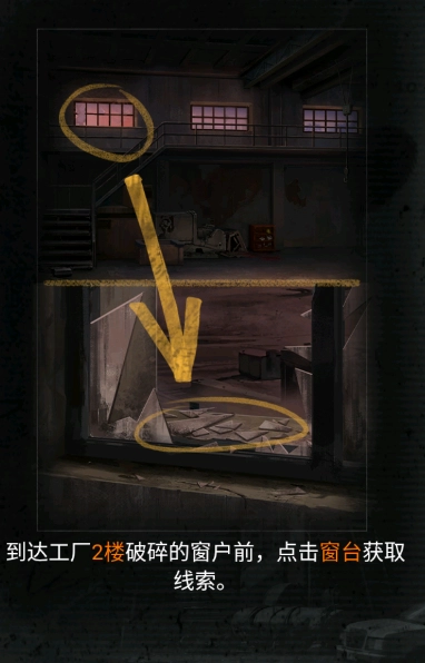 进阶来到工厂二楼的窗户前面获取线索。