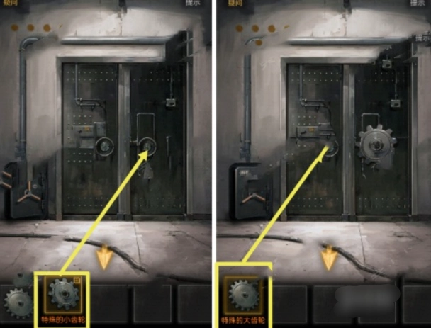 在门上放置“特殊的小齿轮”和“特殊的大齿轮”。