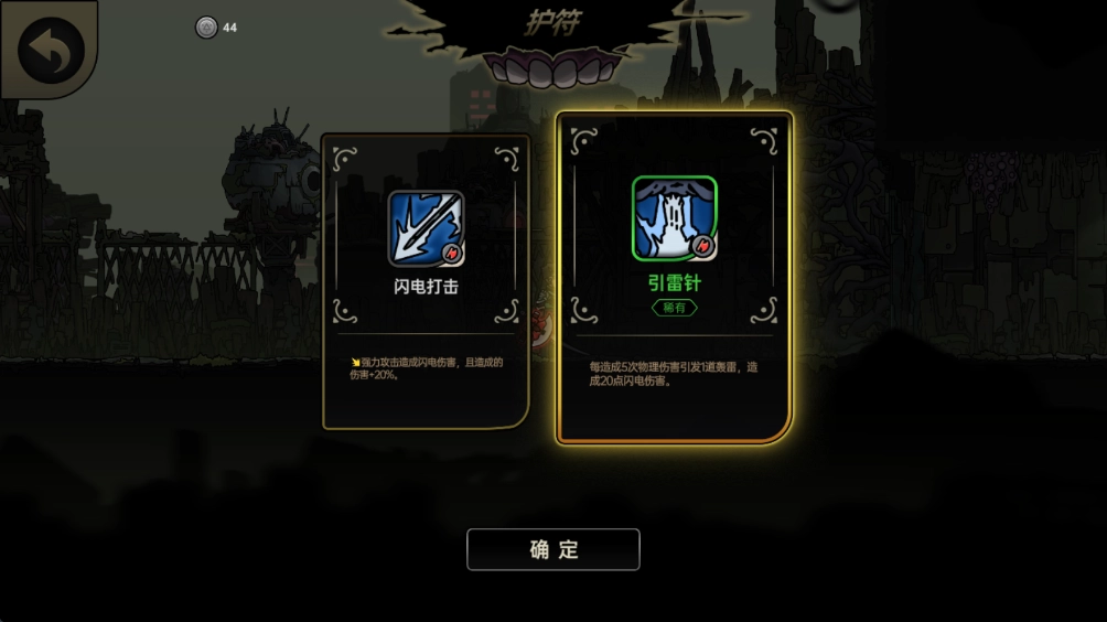 消灭敌人后,有机会在两张加强卡牌中任选其一。
