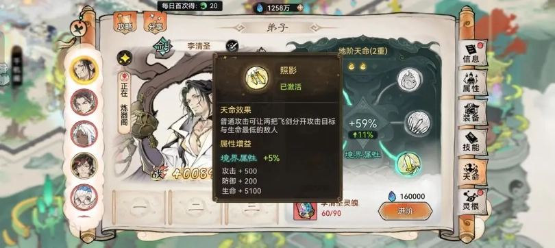对于平民玩家而言,不建议过度追求李清圣,毕竟他进阶所需的资源对平民玩家来说获取难度不小。可以优先培养其他更容易入手的弟子,比如通过8选1自选活动得到的剑修弟子。不过话说回来,老李在后期也是能玩的,只要更换一套功法就行——开服一段时间后会推出一个水系功法“囚龙”,强度相当高,后期也属于常用功法。