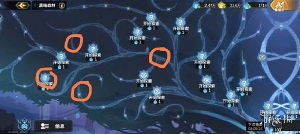 要是这两个条件都没达到,那就直接刷新吧,不用舍不得钻石。等森林保留下来之后,就去图五标注的四个地方找森灯。