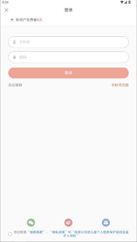 点击手机号注册