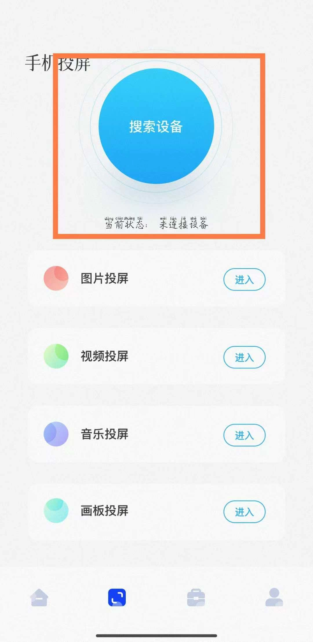 接着点击顶部的“搜索设备”按钮,启动对投屏设备的搜索;