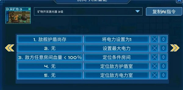 要是对方没带护盾室,就会执行第四条,无任何条件攻击敌方电力室。