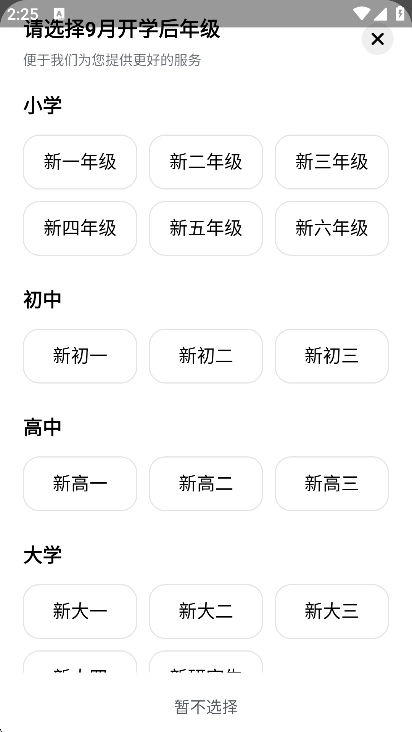 点击左上角的选择年级用户可以根据情况进行选择