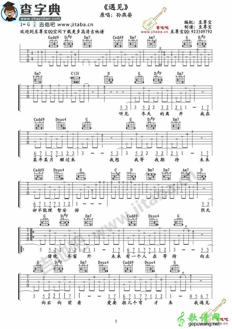 遇见吉他谱_孙燕姿遇见吉他曲谱