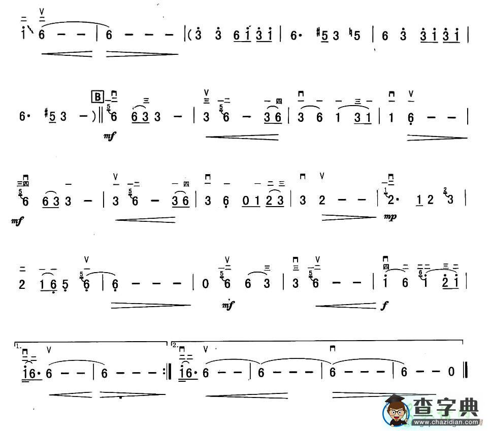 大寨红花遍地开,二胡谱,G调,二胡与...
